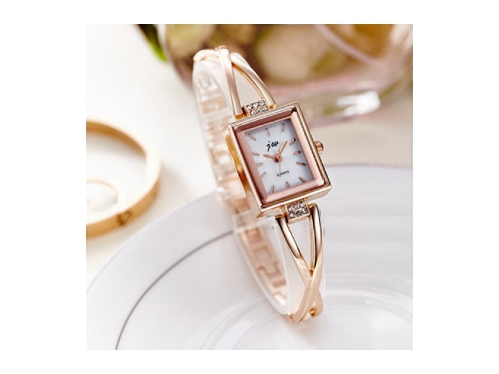 Impress your surroundings with these cute square dial watches adorned with small diamond-like stones.