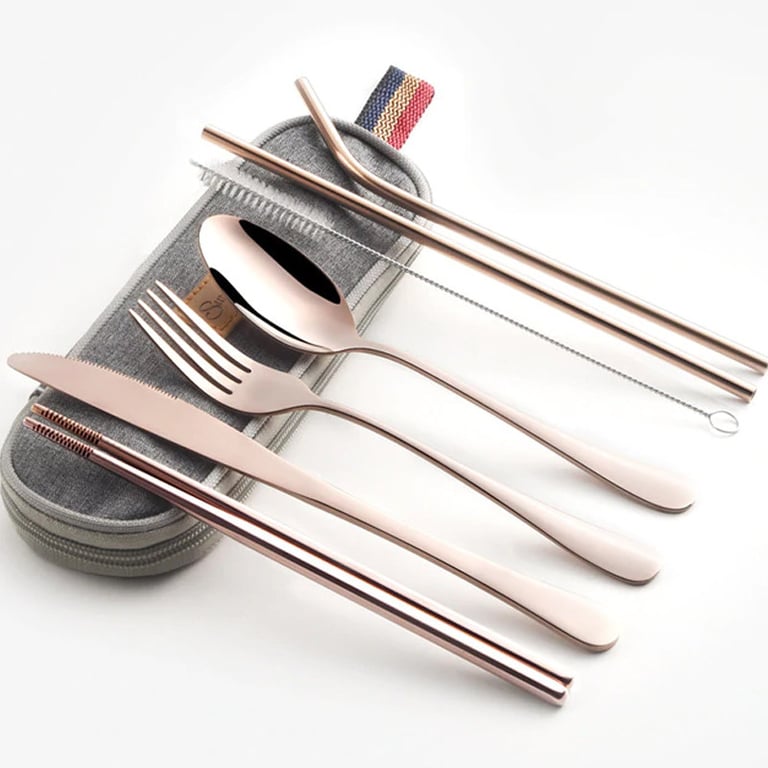 Cutlery set with a practical case to complement your kitchen. It includes a classic cutlery set as well as chopsticks, straws, and a cleaning brush.