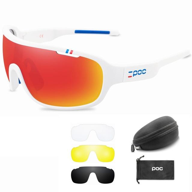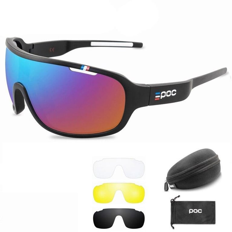 Cycling glasses suitable for both men and women. The package includes 4 interchangeable polarised lenses.