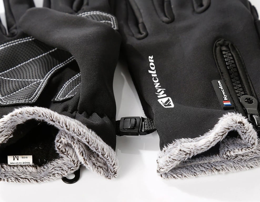 Winter cycling gloves with lining. Non-slip and waterproof. Enhance grip and keep hands warm in winter. Protect against abrasions during falls. Easy zip fastening. The gloves also allow for touchscreen control.