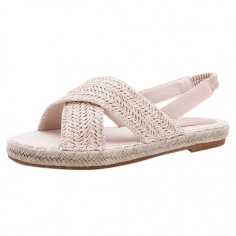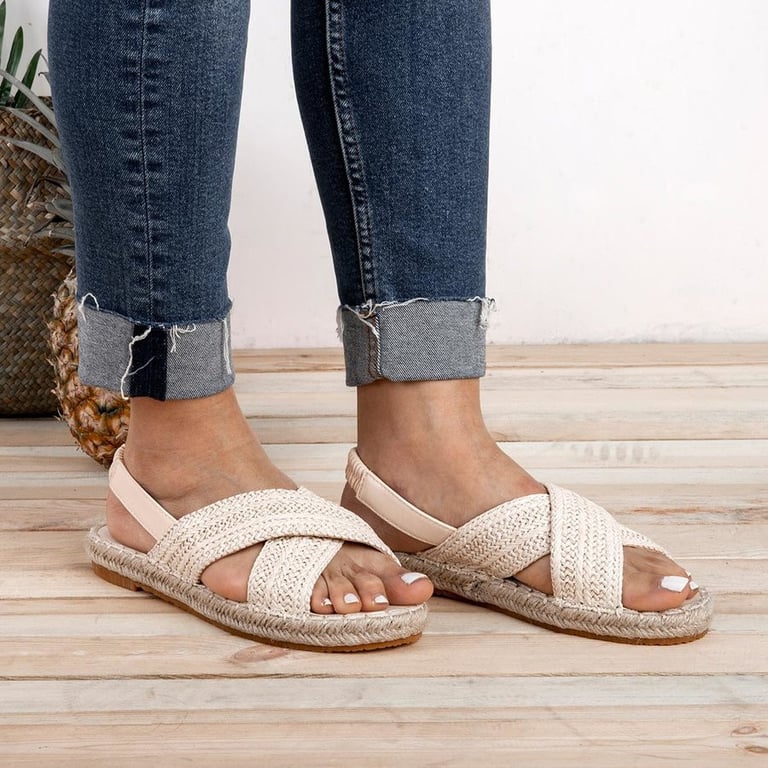Women's straw sandals with a strap over the heel. Open toe. Flat sole with a low platform. Available in two variants.