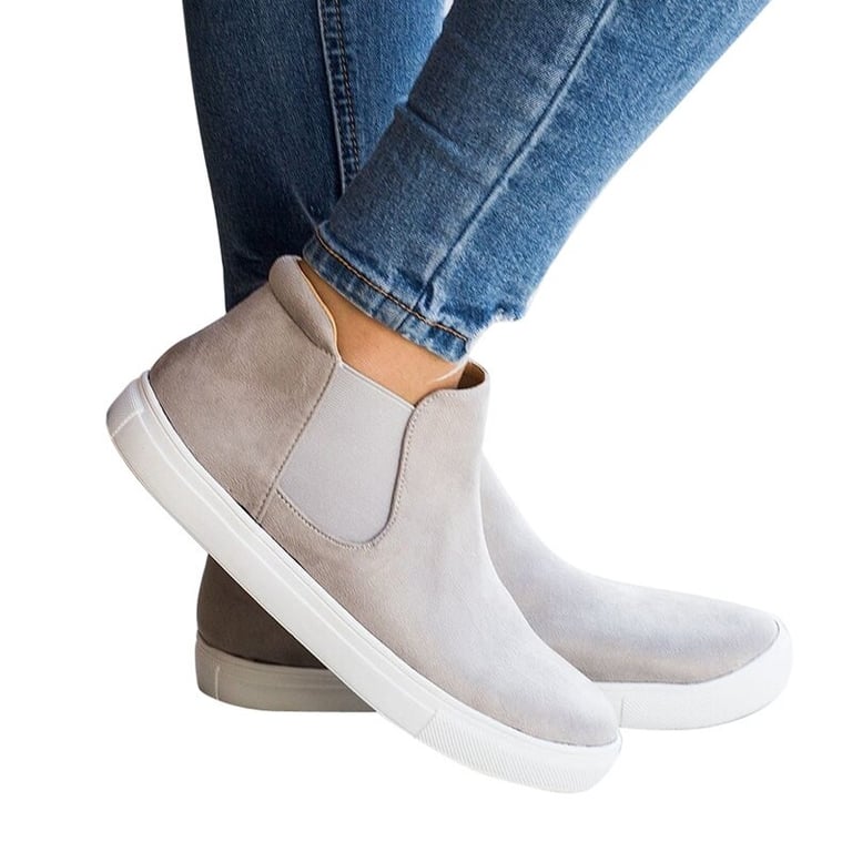 Women's ankle boots with a leather look. Flat rubber sole. Slip-on. Available in multiple colour options.