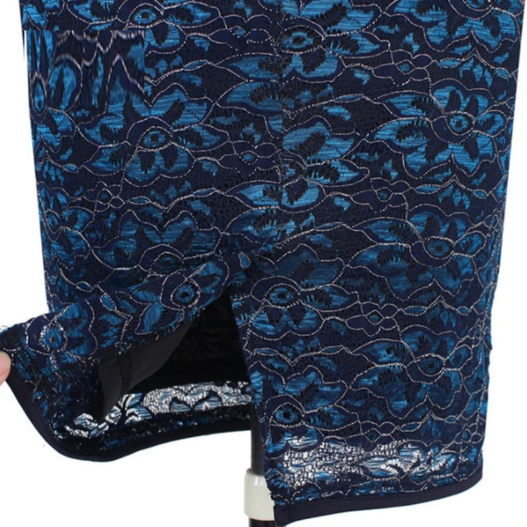 Women's evening dress in a fitted silhouette. Bodycon style. Knee-length. Short sleeves and a deep neckline. Lace embellishment. Available in multiple colour options.