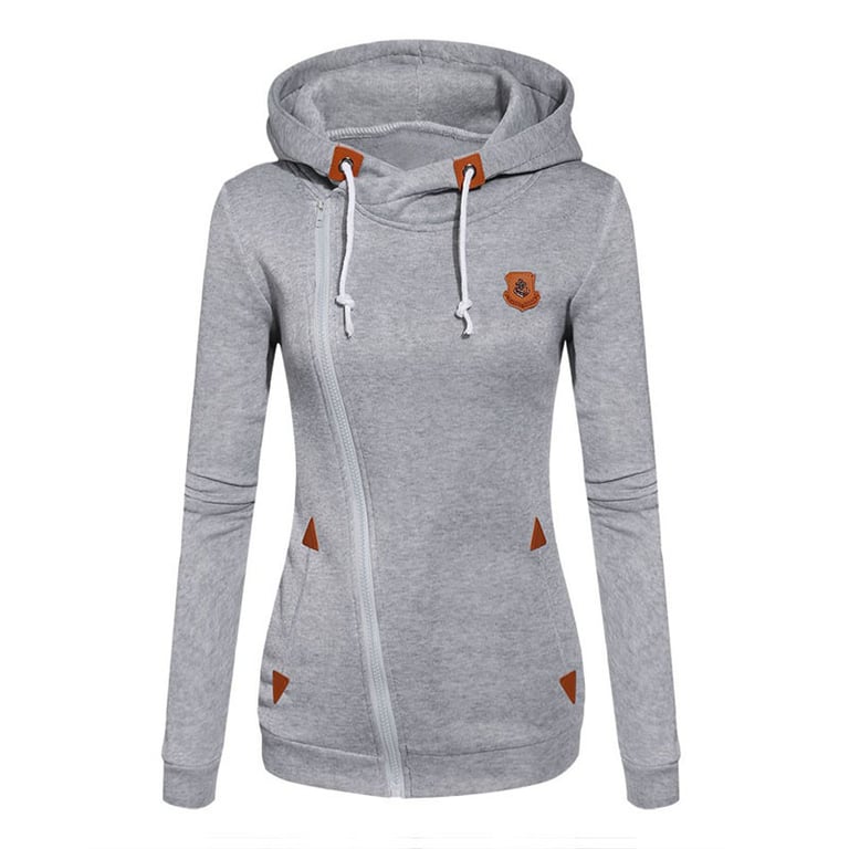 Women's hoodie with a hood and drawstrings. The hoodie features an asymmetrical zip fastening and two side pockets. Available in several colour options.