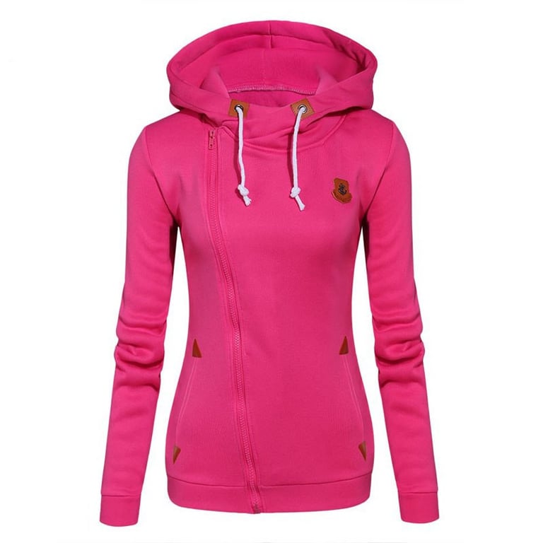 Women's hoodie with a hood and drawstrings. The hoodie features an asymmetrical zip fastening and two side pockets. Available in several colour options.
