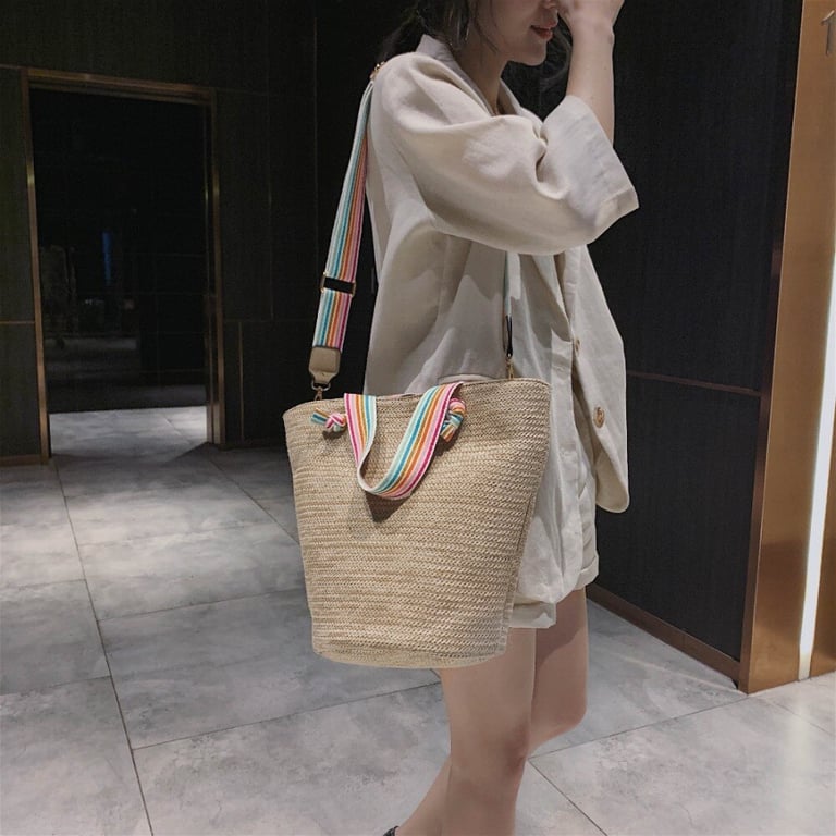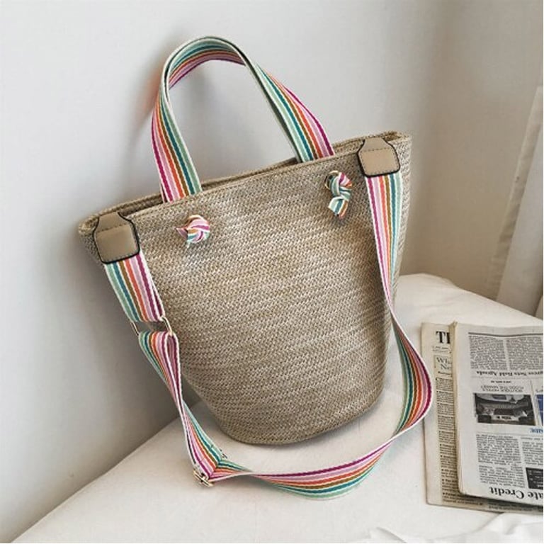 Women's straw handbag with a handle and a long shoulder strap. Large spacious pocket. Available in multiple variants.