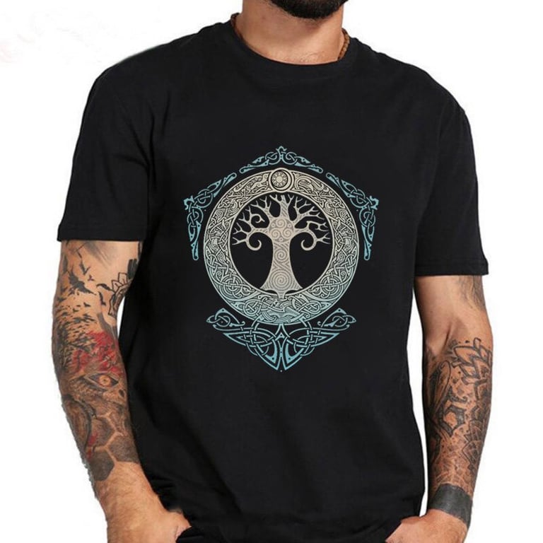 Men's loose-fitting t-shirt with short sleeves and a round neckline. Colourful print on the front.