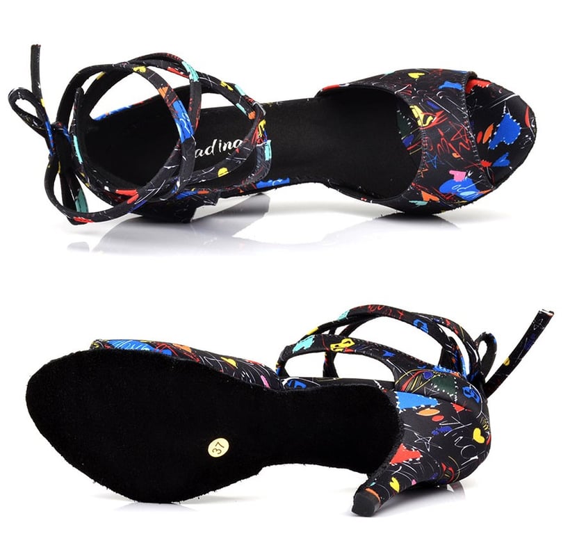 These stylish dance shoes with a heart print are very elegant and comfortable.