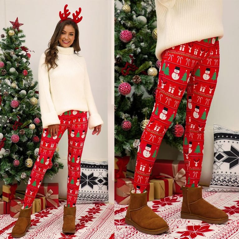 Women's leggings with an elastic waistband. Christmas-themed print. Available in multiple variants.