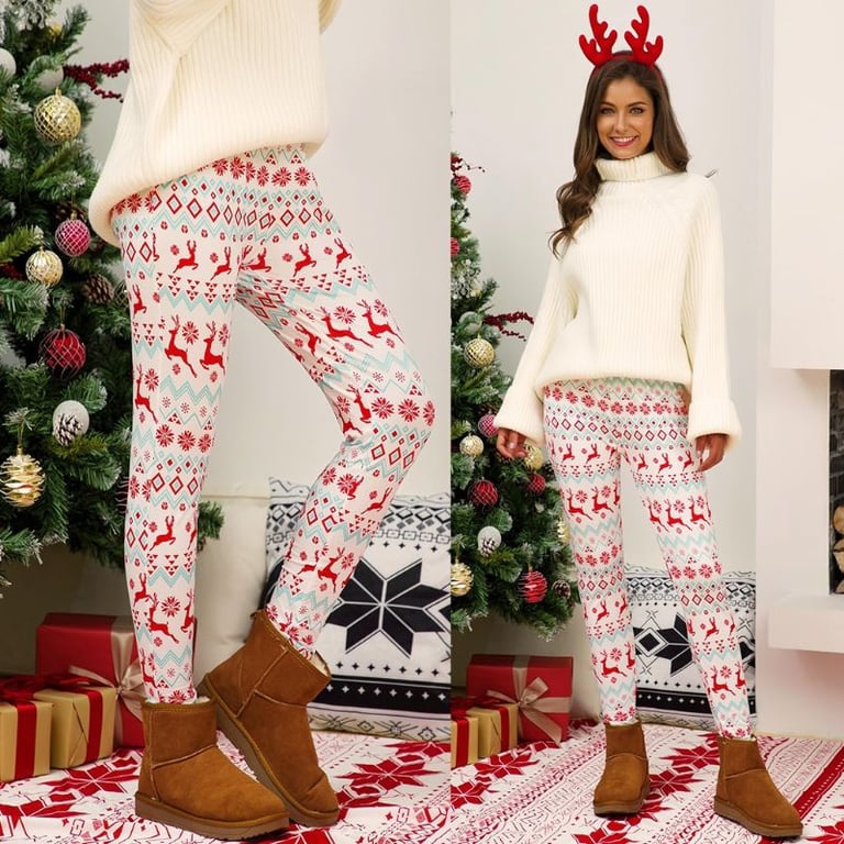 Women's leggings with an elastic waistband. Christmas-themed print. Available in multiple variants.