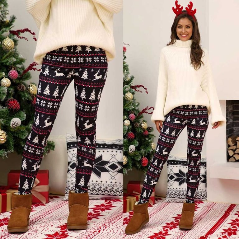Women's leggings with an elastic waistband. Christmas-themed print. Available in multiple variants.