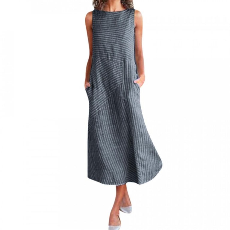 Women's sleeveless dress. Long loose fit with side pockets. Available in multiple variations.