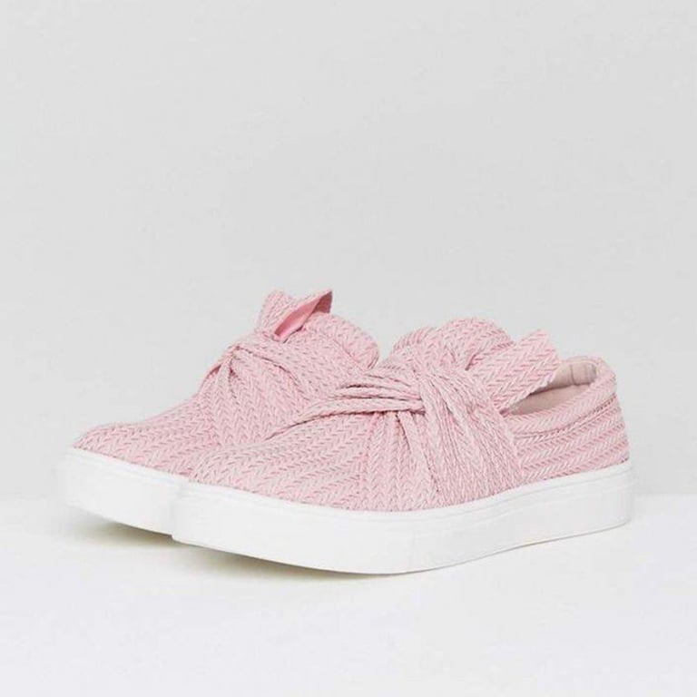 Women's slip-on trainers with a flat rubber sole and a round toe. Sturdy heel. Bow detail. Available in multiple colour options.