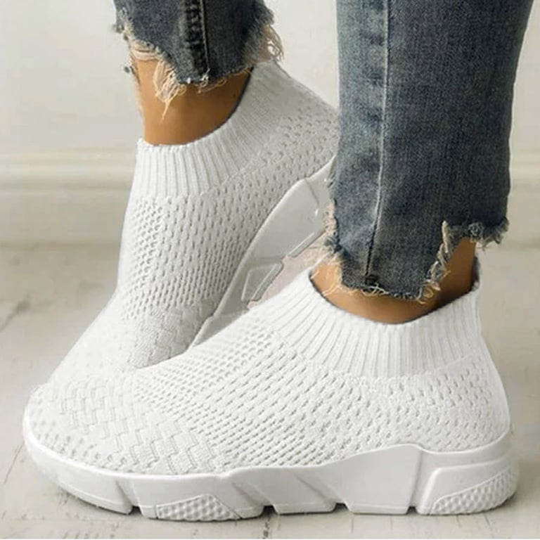 Women's stylish platform sock shoes. Rubber sole with ribbing. Elastic. Available in multiple colour options.
