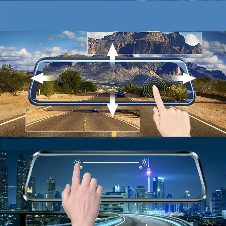 Package contents: 1x front dash camera in mirror, 1x rear dash camera