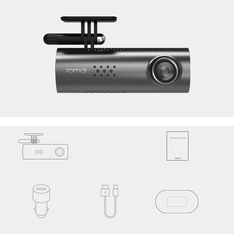 Package Contents: 1x camera, 1x USB cable, 1x car charger, 1x electrostatic sticker, 1x user manual