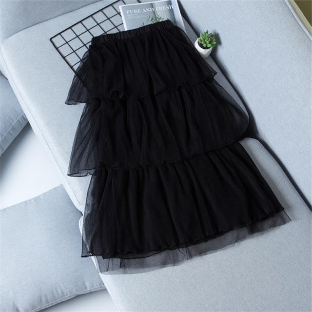 Beautiful ruffled skirt made of transparent material with embellishments.