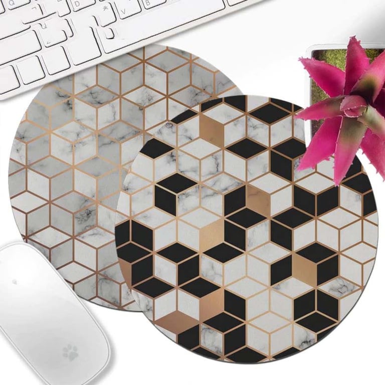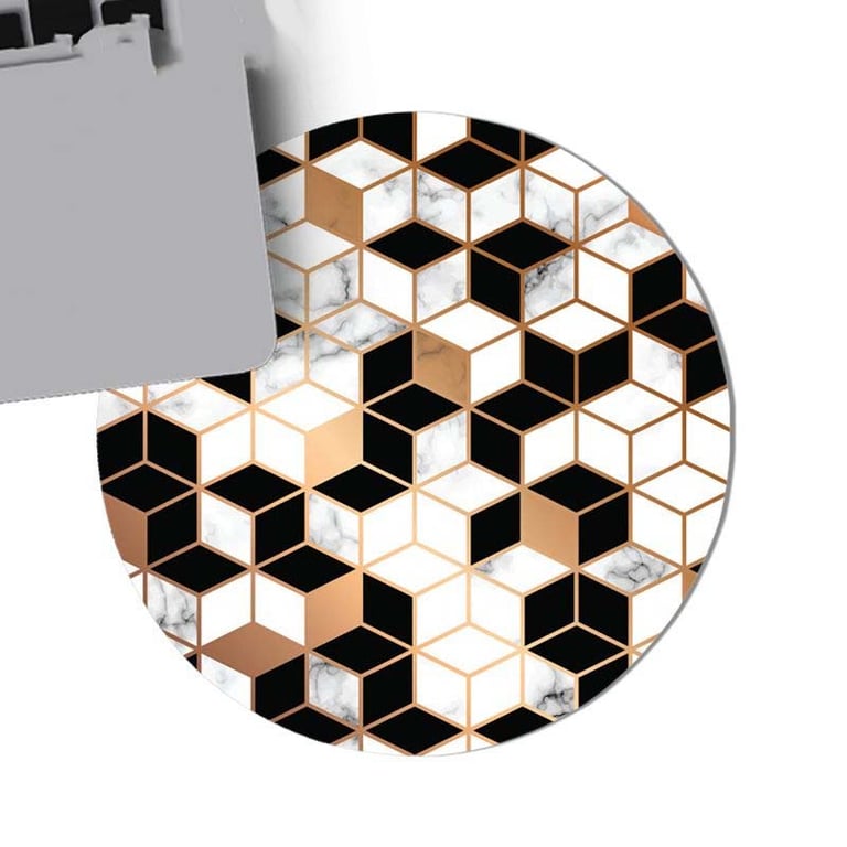 Round mouse pad with geometric patterns.