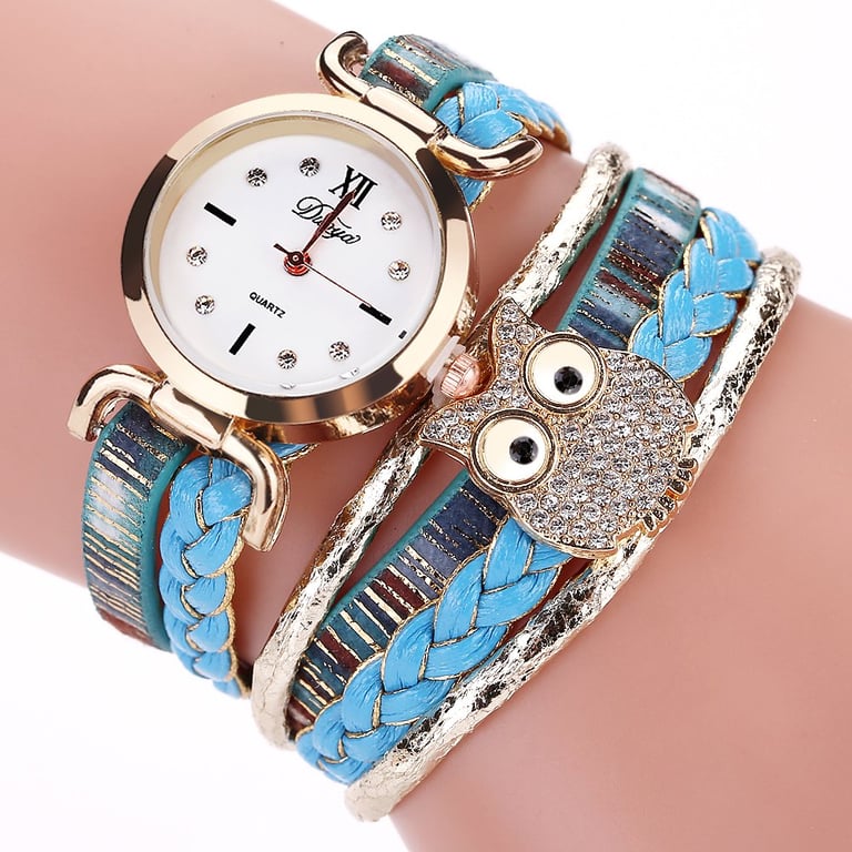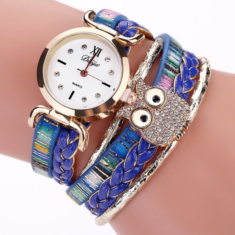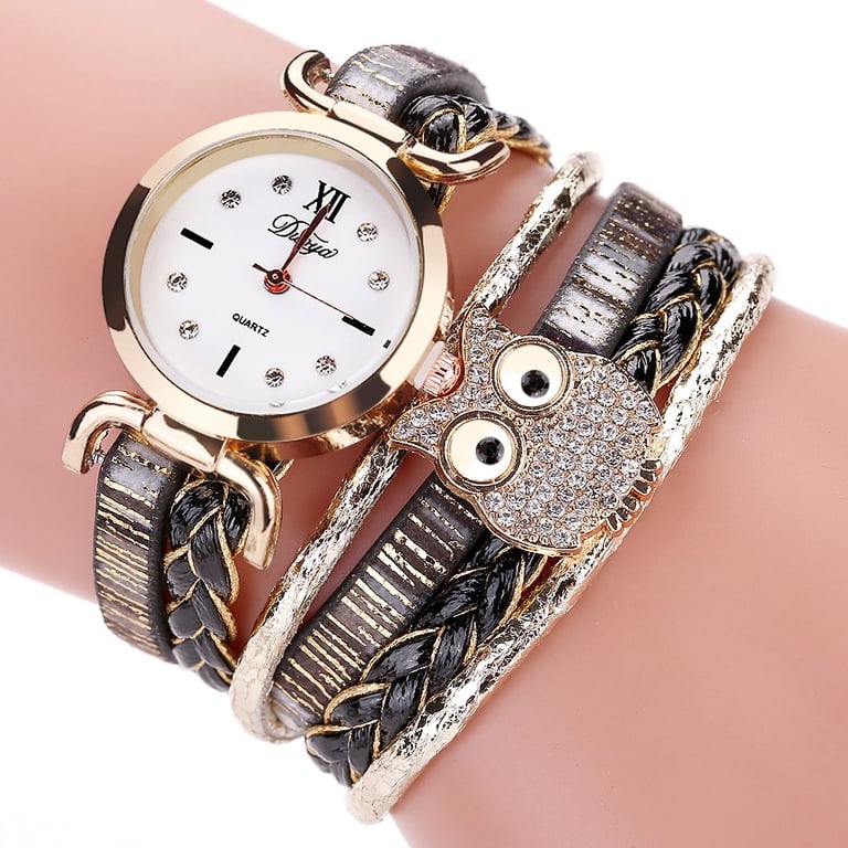 Decorated woven watch with an owl