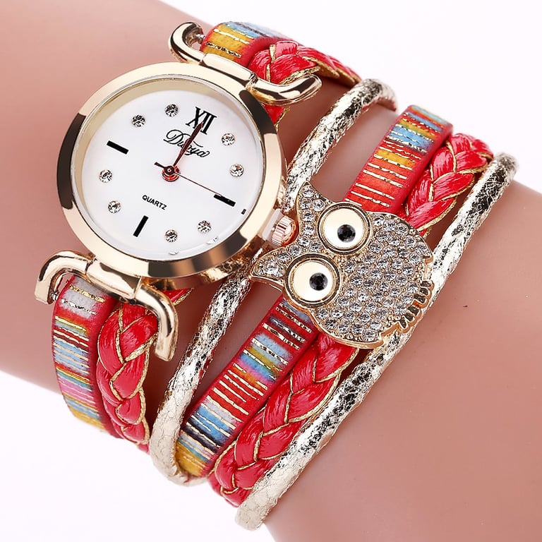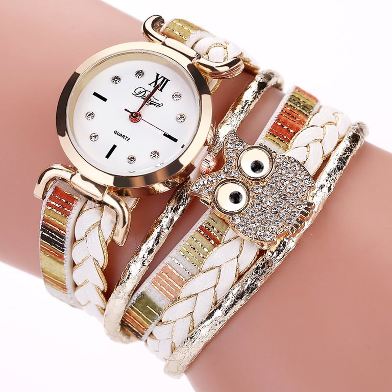 Beautifully decorated woven watch with an owl, which is embellished with stones. Let your owl keep an eye on the time and choose from many colour variations. An ideal gift for women and girls.