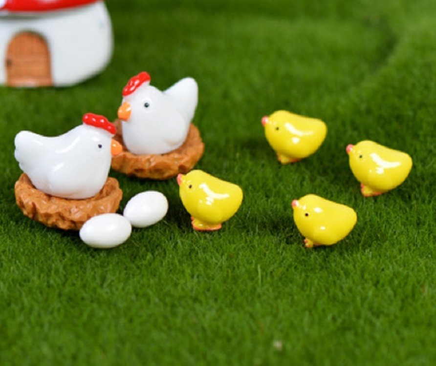 Contents of the package: 2x hens, 2x nests, 3x chicks, 3x eggs