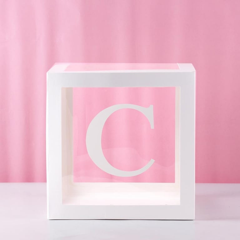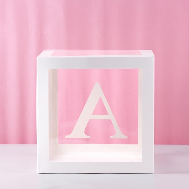 Transparent decorative boxes with letters of your choice, measuring 30 x 30 cm. Suitable for the interior of a children's room, for celebrations or parties of any kind.