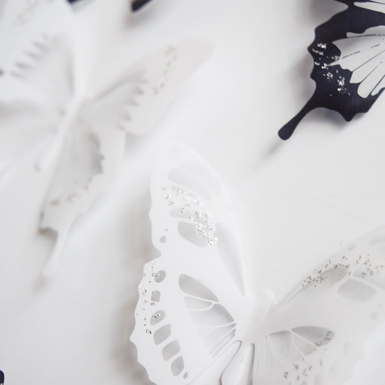 Set of 18 butterflies that can be stuck in a child's room or used as decoration on windows, furniture, or walls, with a 3D effect.
