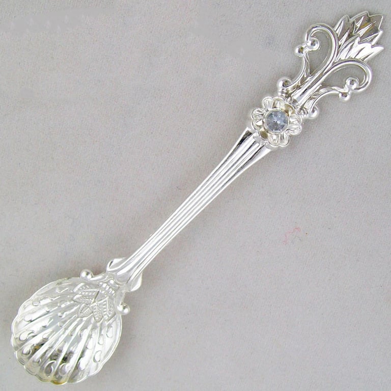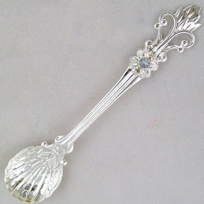 These spoons are made from an alloy and are decorated with a gemstone.