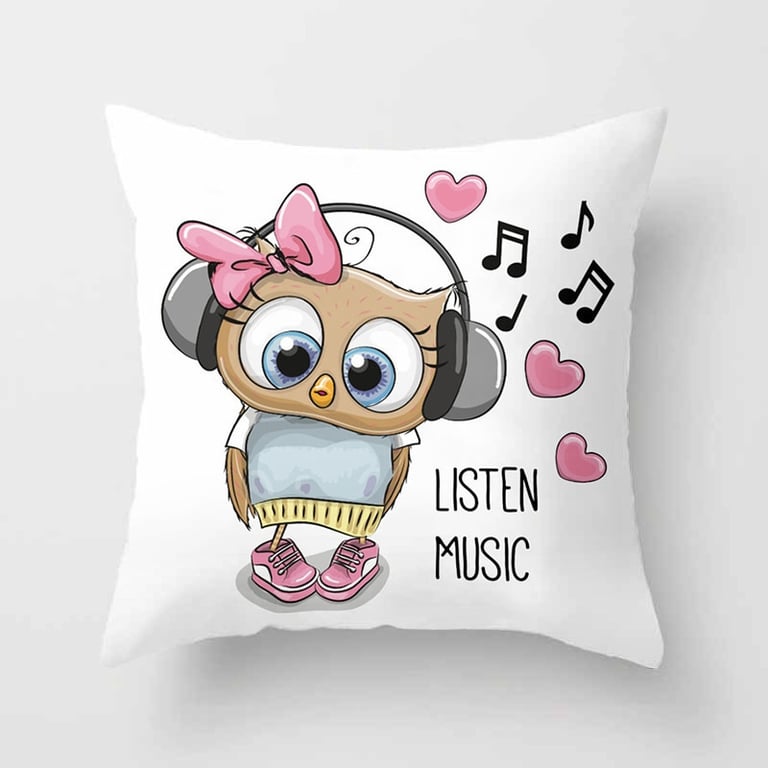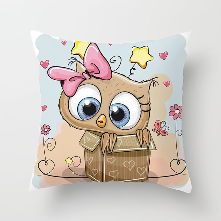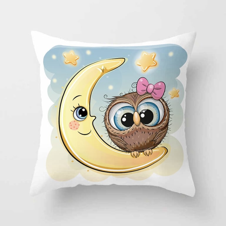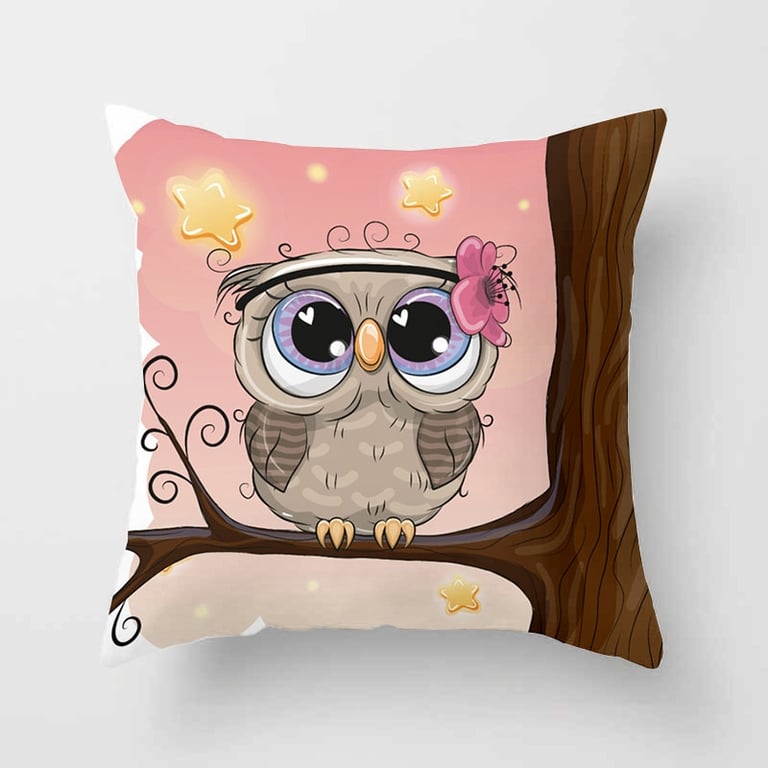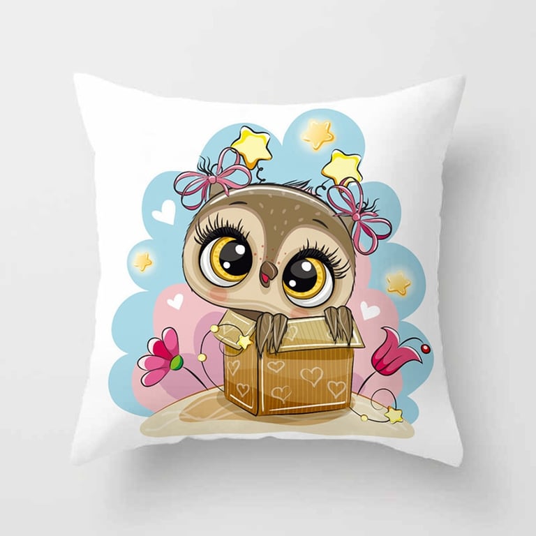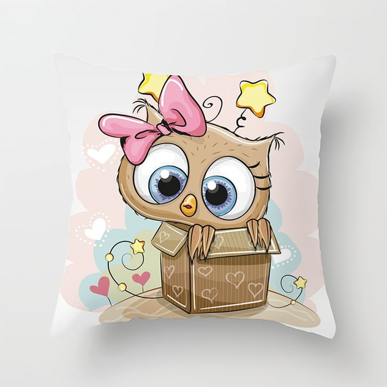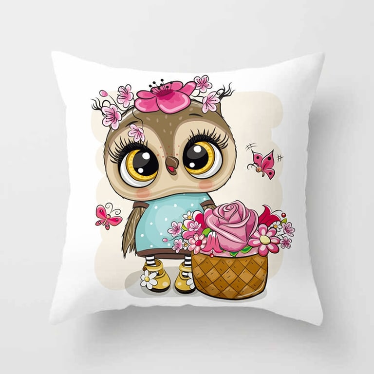 Decorative cover with an owl for a children's cushion