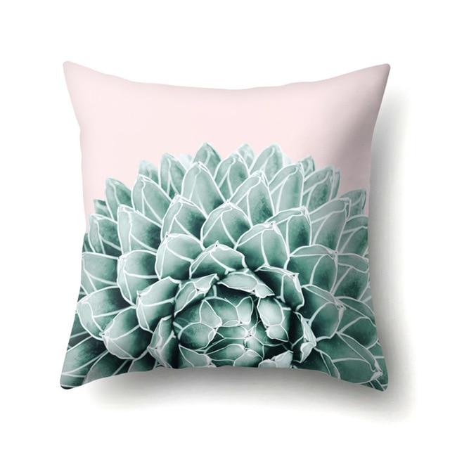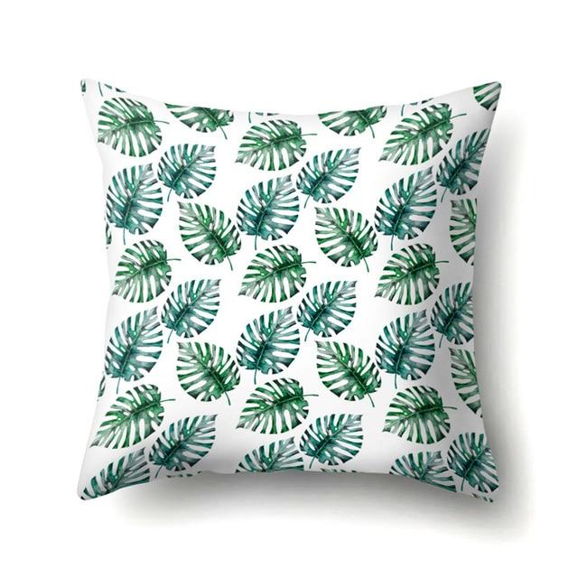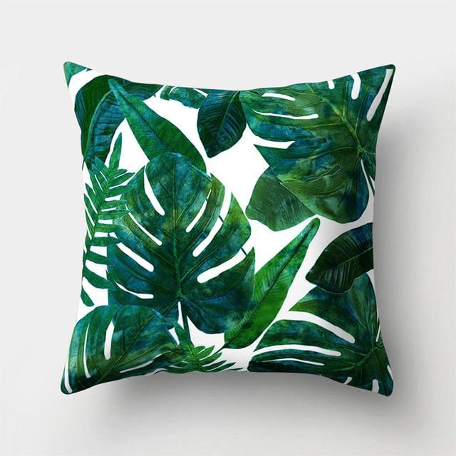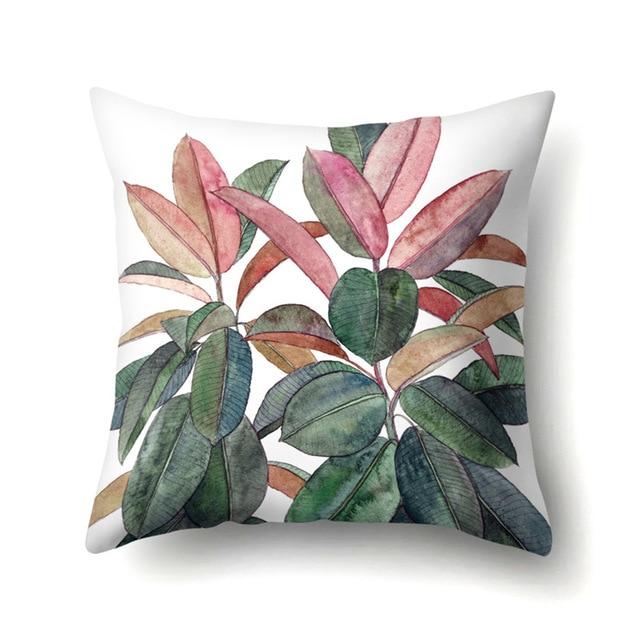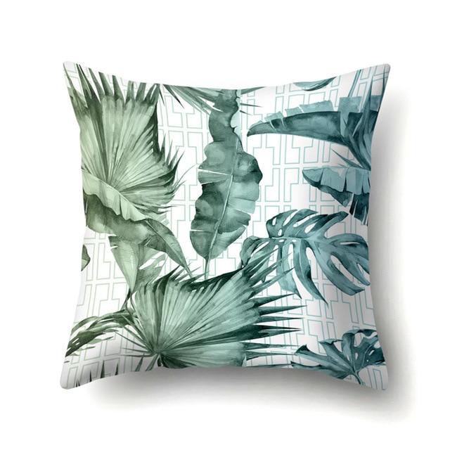 Cushions with natural leaf motifs. The cover itself is made from cotton canvas.