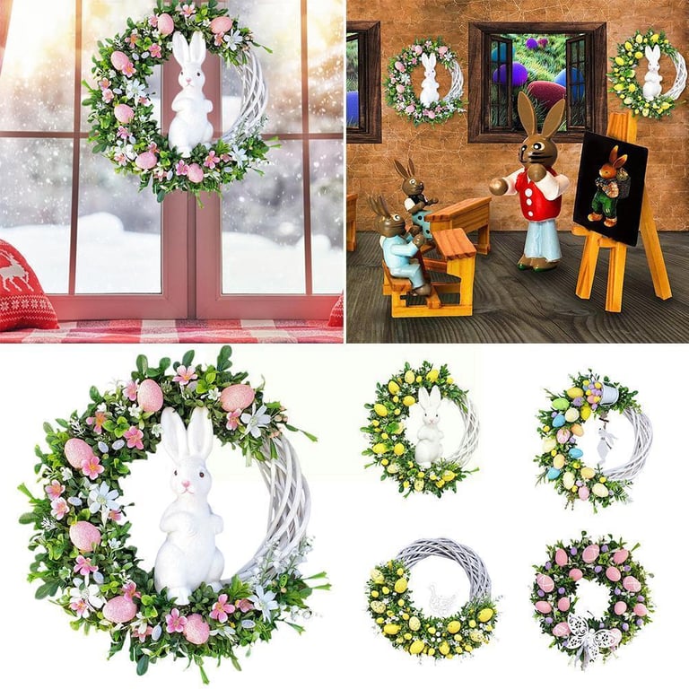 Decorative Easter wreath with a rabbit.
