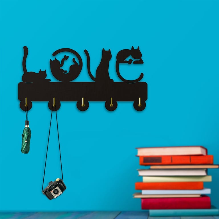 If you are a cat lover, you might like this practical holder. It is suitable for the kitchen or a child's room. The size of the wooden holder is 30 cm and it has 5 hooks for hanging.