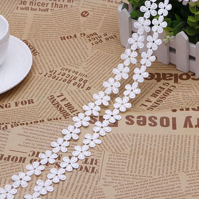 The delicate lace made of tiny flowers is perfect for creating DIY products or for decorating your festive table.
