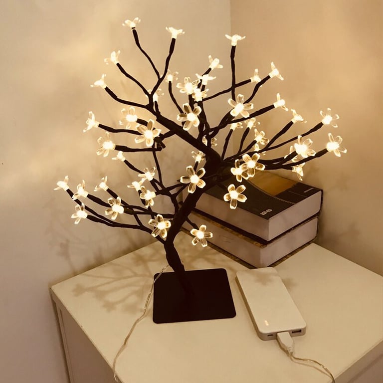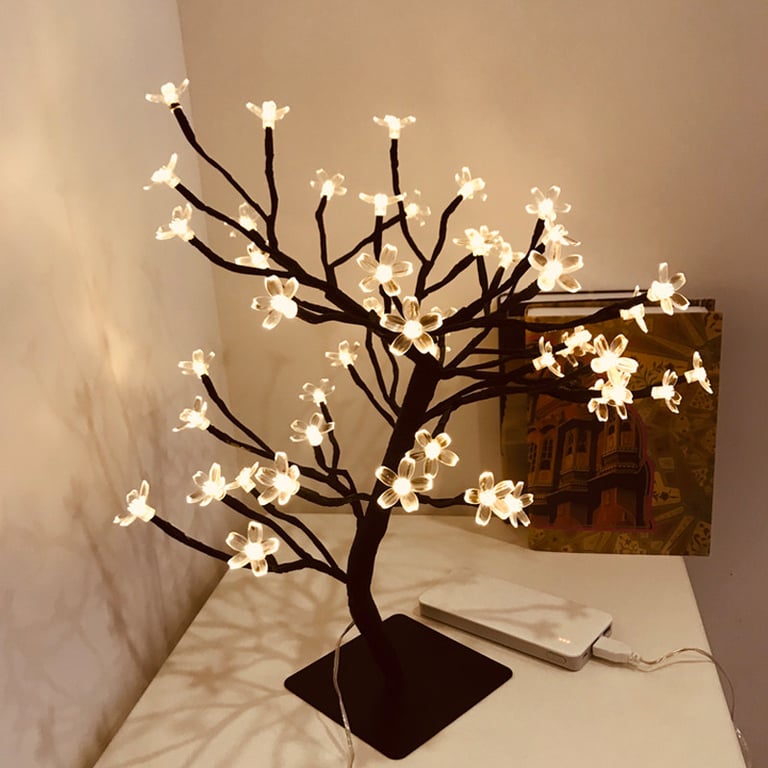 Decorative lamp in the shape of a tree. Flowers with LED lighting. Warm white light. Powered by a USB cable.