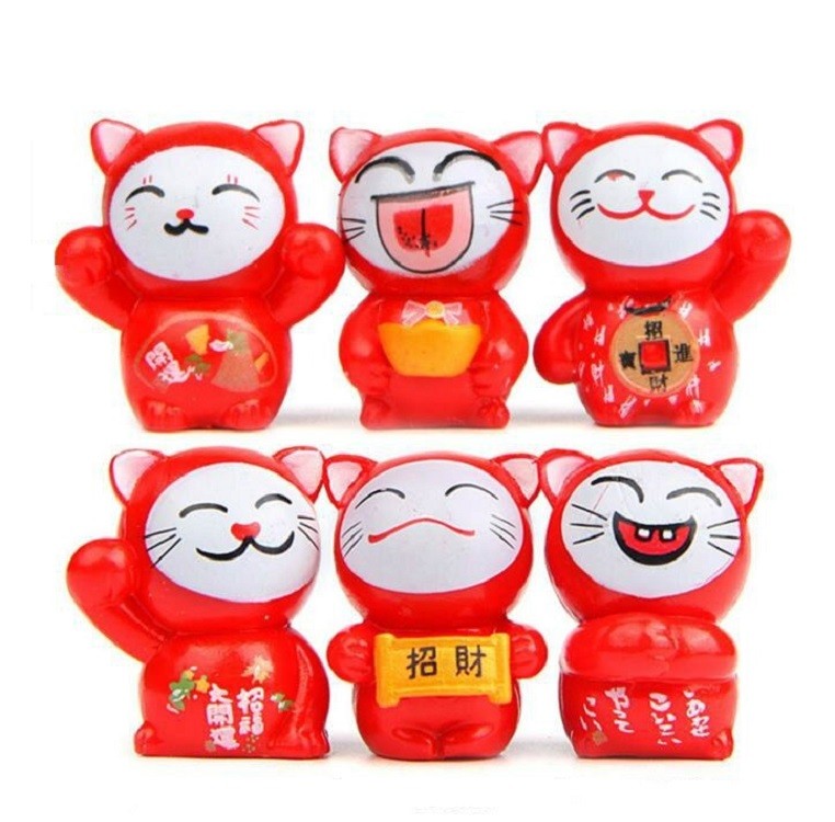 Decorative lucky cat miniature 6 pcs