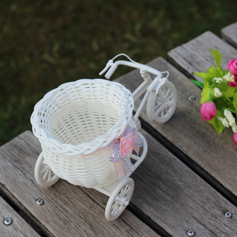 Decorative rattan basket with tricycle