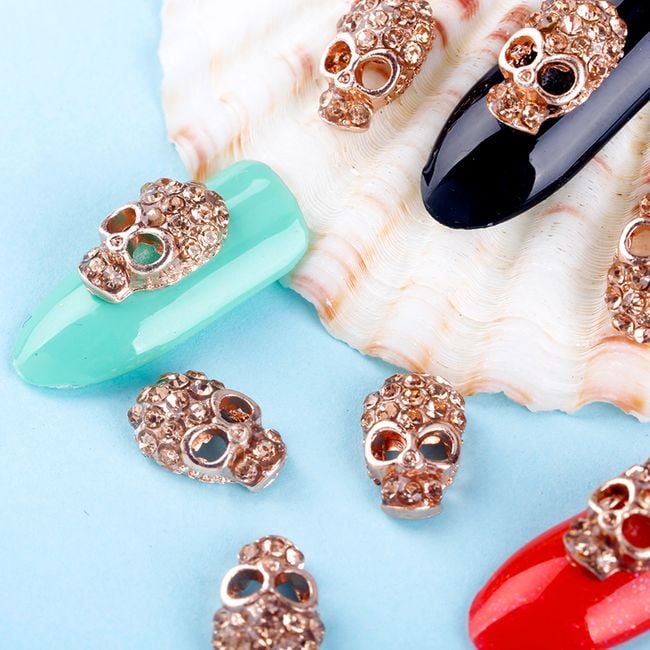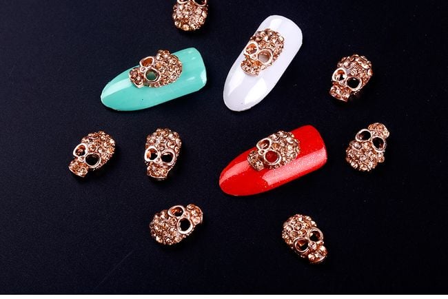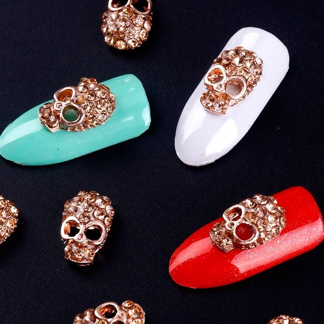 Original nail decorations in the shape of skulls. The colour of the base coat will beautifully shine through their eyes.