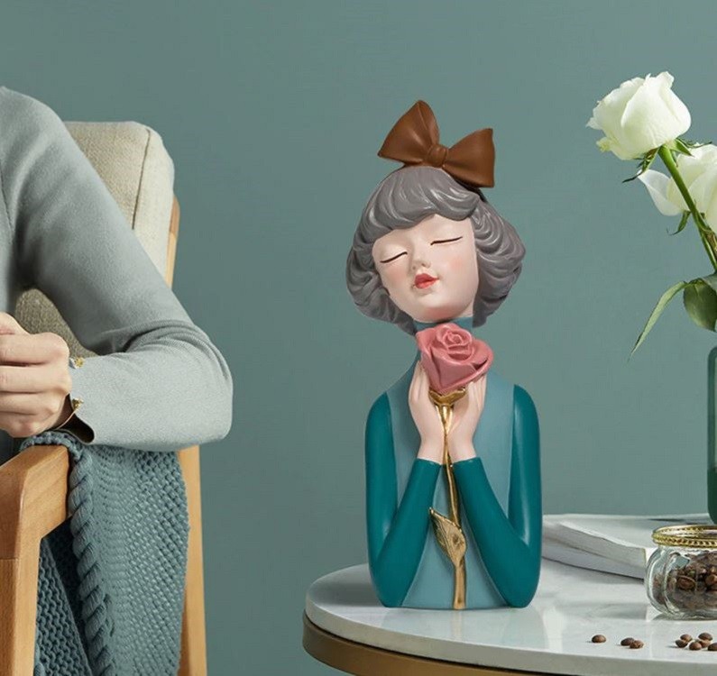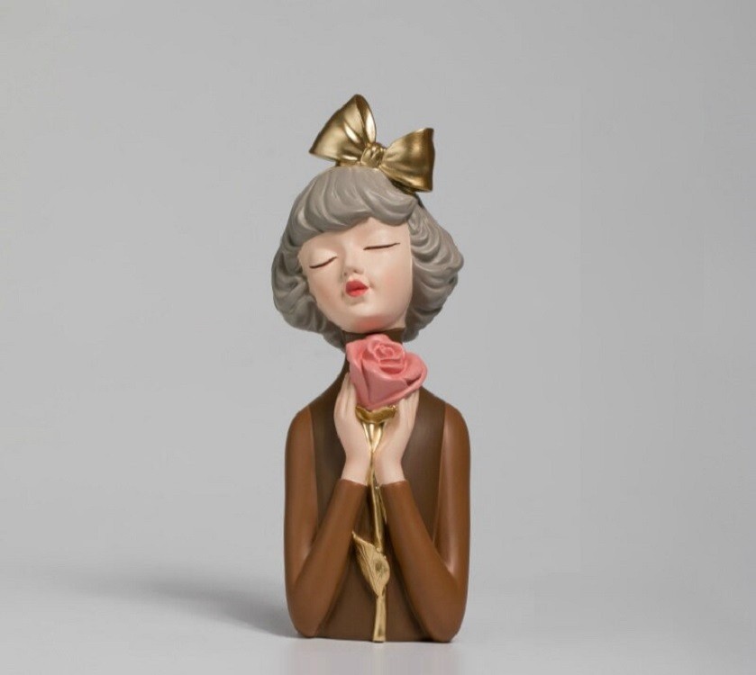 Decorative statue of a girl with a rose