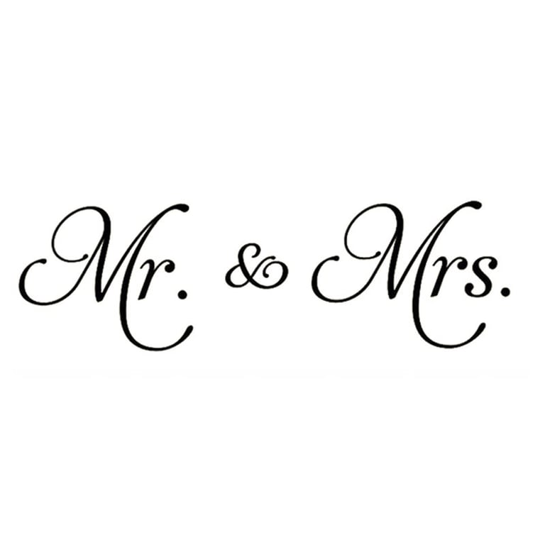 Decorative sticker above the double bed with the inscription Mr. and Mrs.