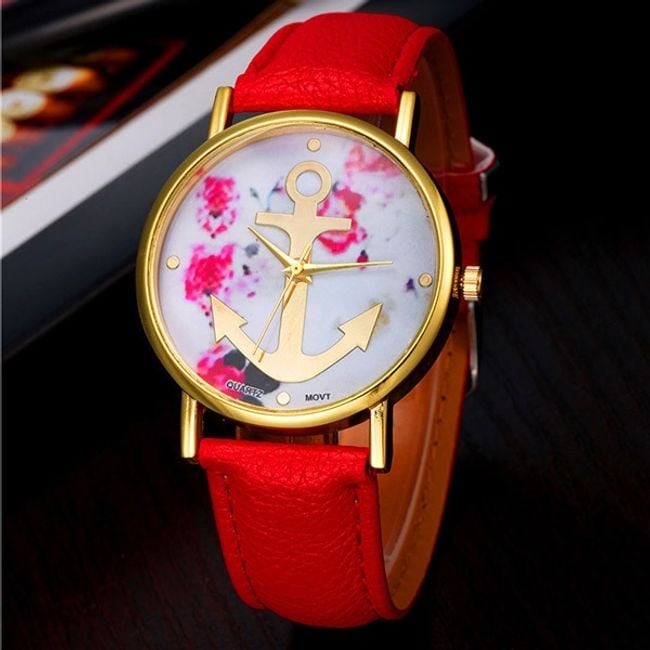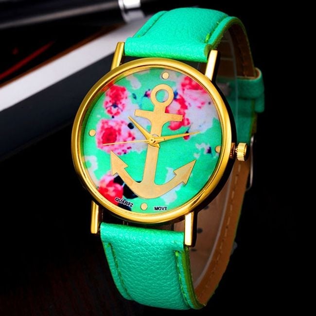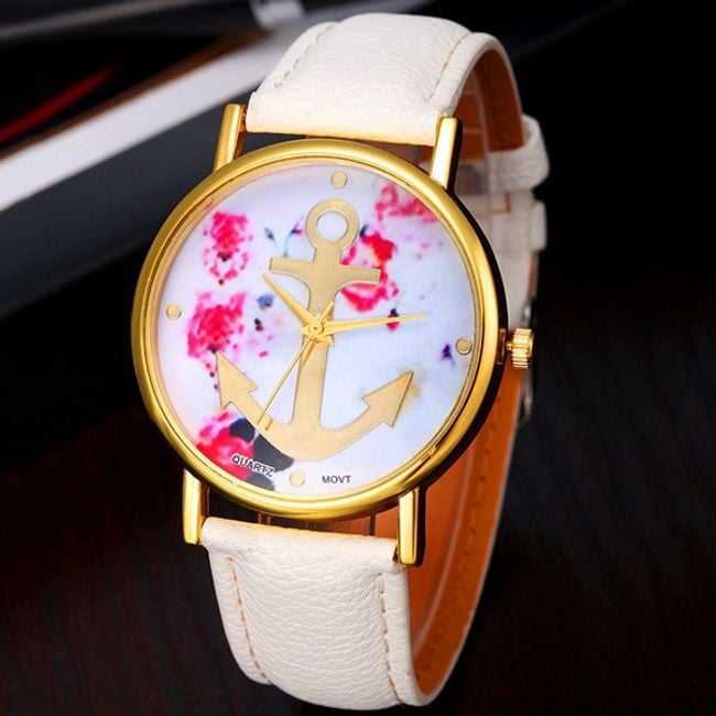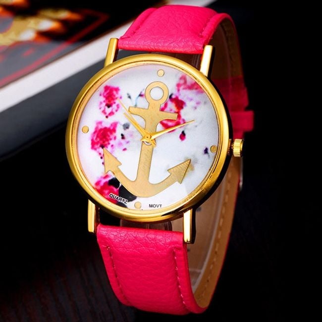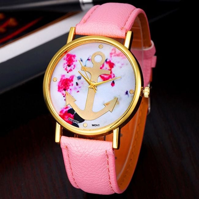 Treat yourself and get this great fashion accessory. The watch comes in soft colours. The dial is designed in gold, and inside the dial is an image of an anchor with delicate flowers. You have the option to choose the watch from several colours.
