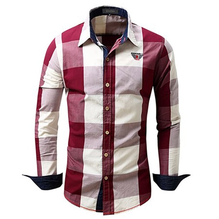 Men's long-sleeve shirt. Collar neckline with button fastening. Checked pattern and logo on the chest. Available in multiple colour options.
