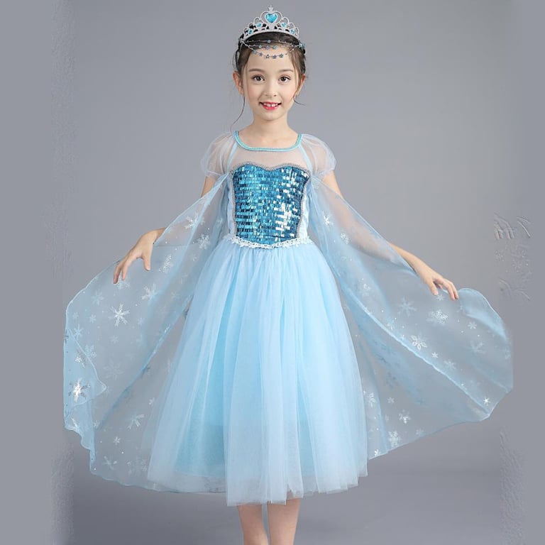 The dress also includes a cape decorated with sparkling snowflakes.