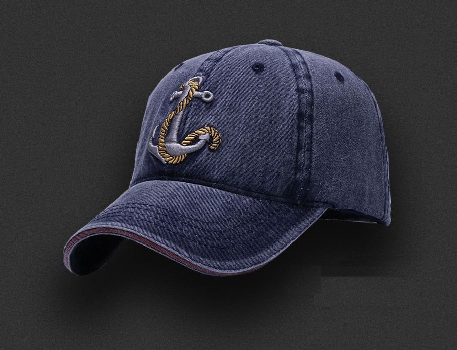 This denim cap with an anchor print will delight any man or woman.