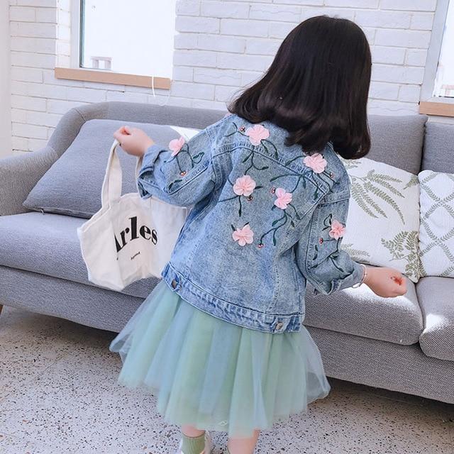 Denim jacket for girls with a beautiful embroidery on the back.