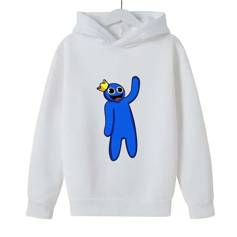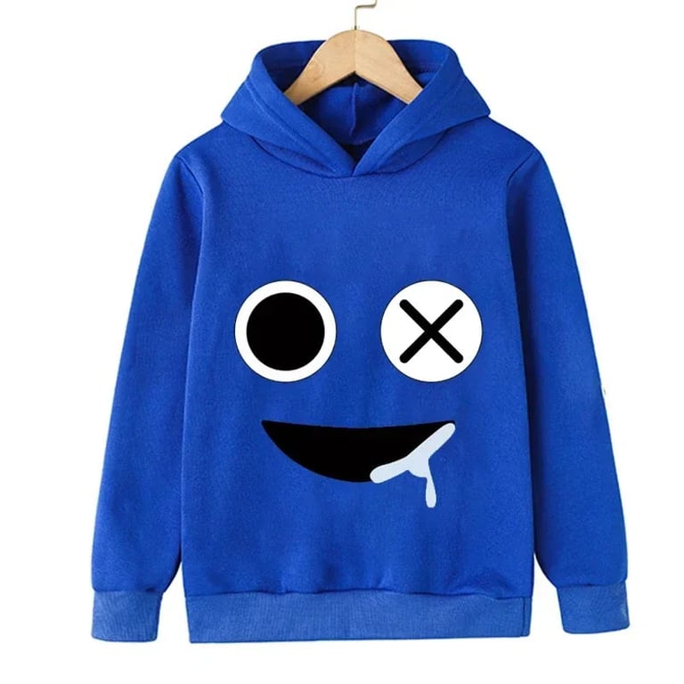 Designer children's hoodie Rainbow Friends. Material: 70% cotton, 30% polyester Size chart (cm) Size | Hoodie length | Chest circumference | Sleeve length | Height 100 | 42 | 60 | 39 | 90 - 105 110 | 45 | 66 | 41 | 105 - 115 120 | 48 | 72 | 43 | 115 - 125 130 | 51 | 78 | 45 | 125 - 135 140 | 54 | 84 | 47 | 135 - 145 150 | 57 | 90 | 49 | 145 - 155 160 | 60 | 96 | 51 | 150 - 160