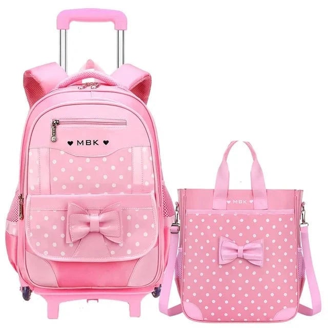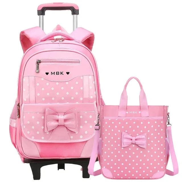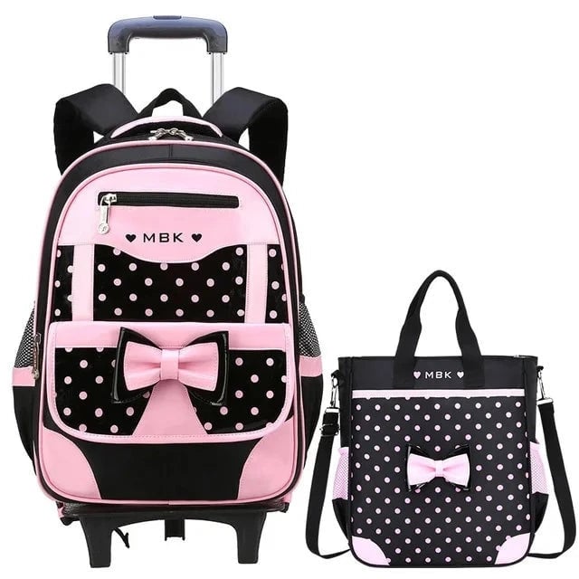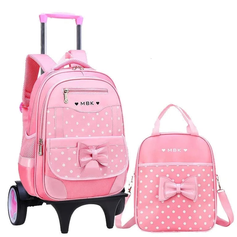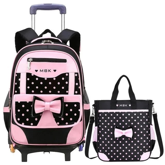 Designer girls' travel backpack on wheels.