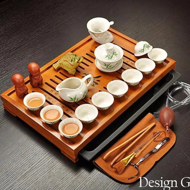 Premium designer set for lovers of the tea ritual. It includes teapots, cups, a gaiwan, tools and a tray. A complete set for enjoyable moments with tea.