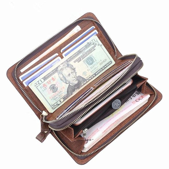 Designer long brown wallet.