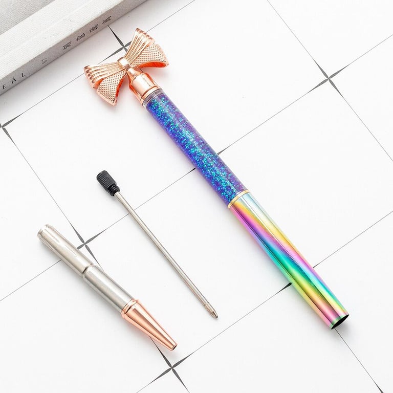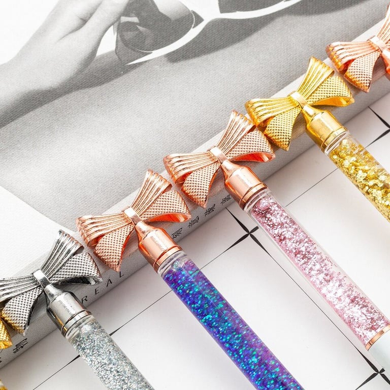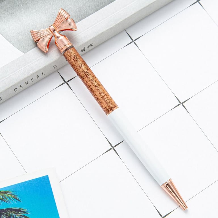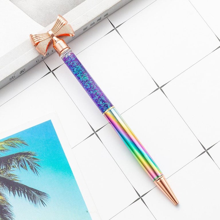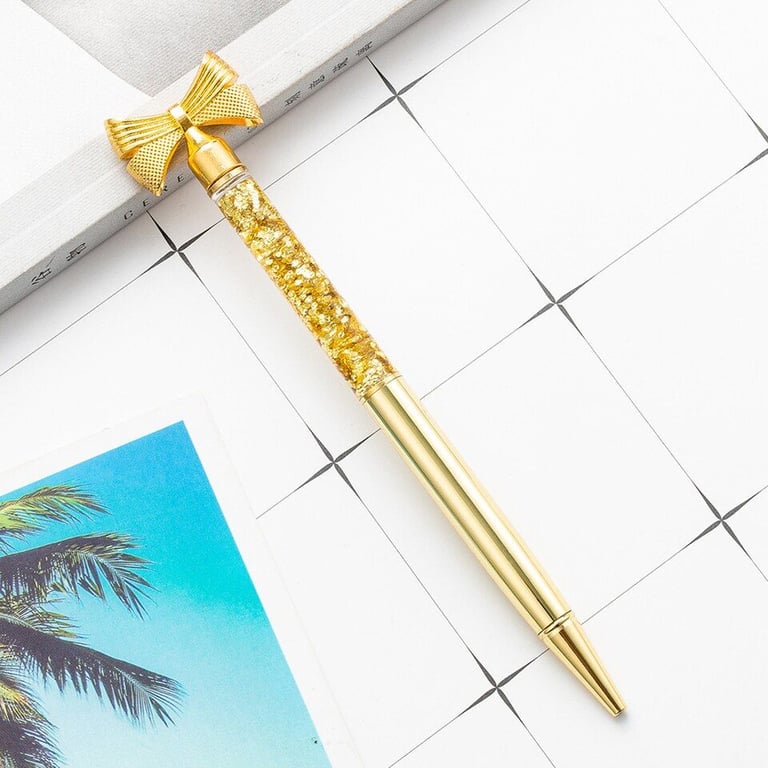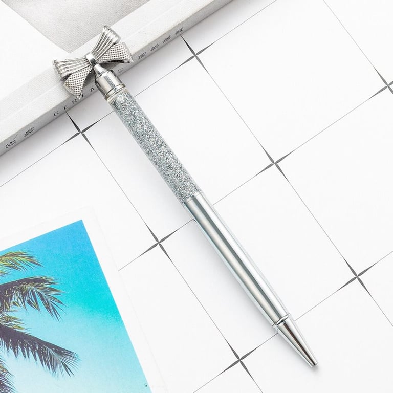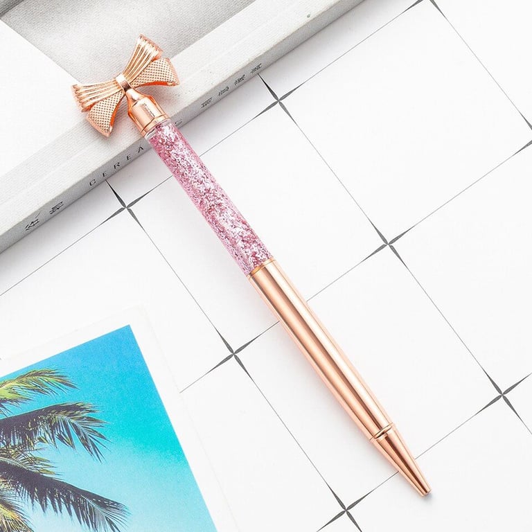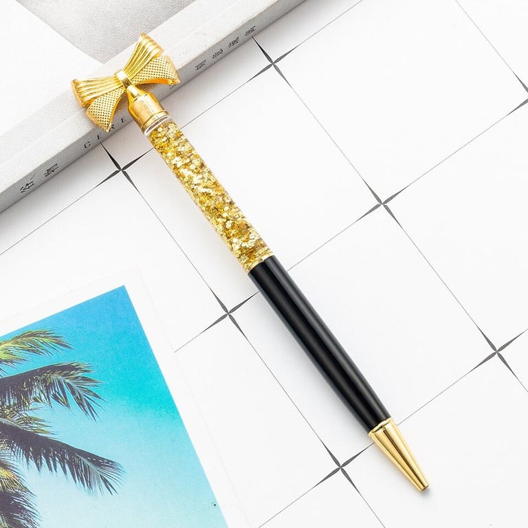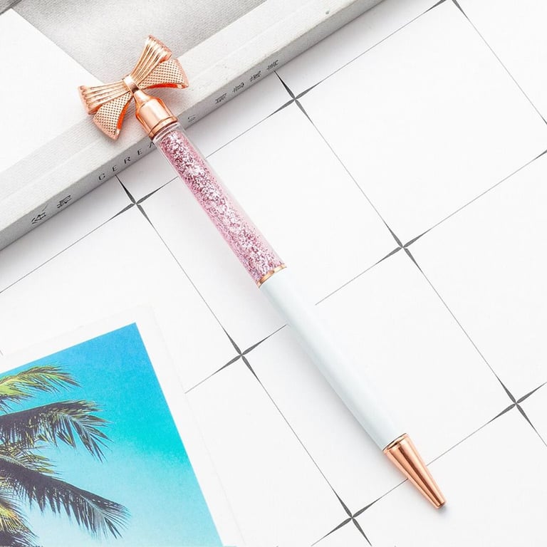 Designer school pen with a bow-shaped decoration and glitter