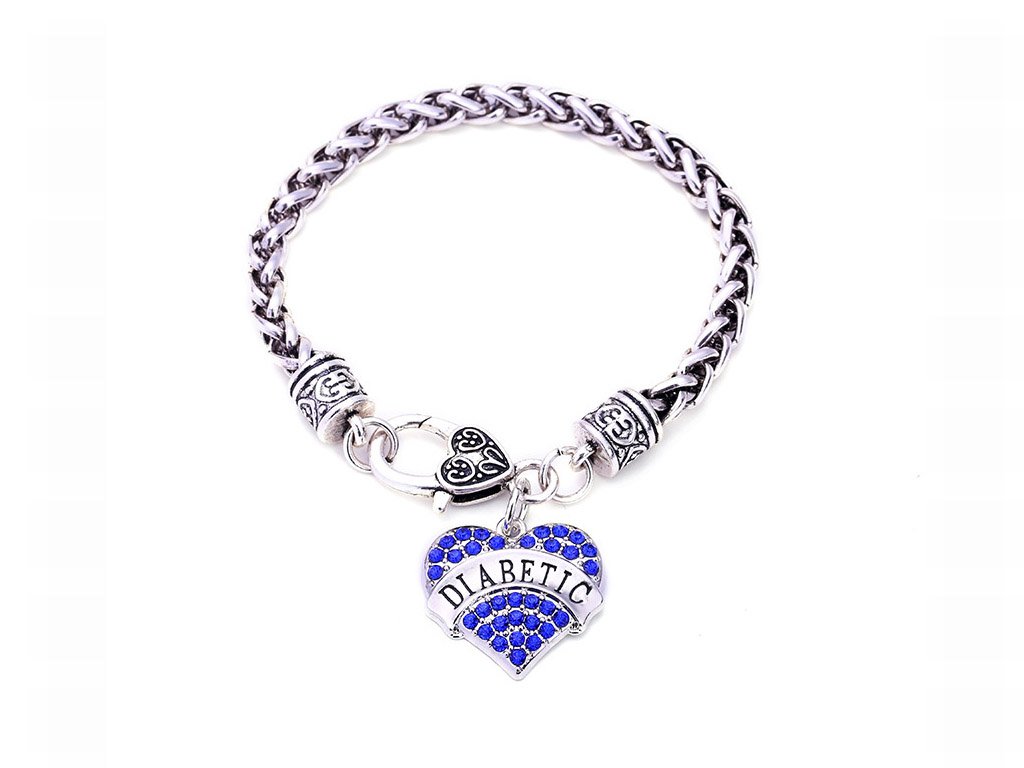A beautifully decorated bracelet with a heart and the inscription Diabetic, whose heart is inlaid with stones. A suitable gift for diabetics.